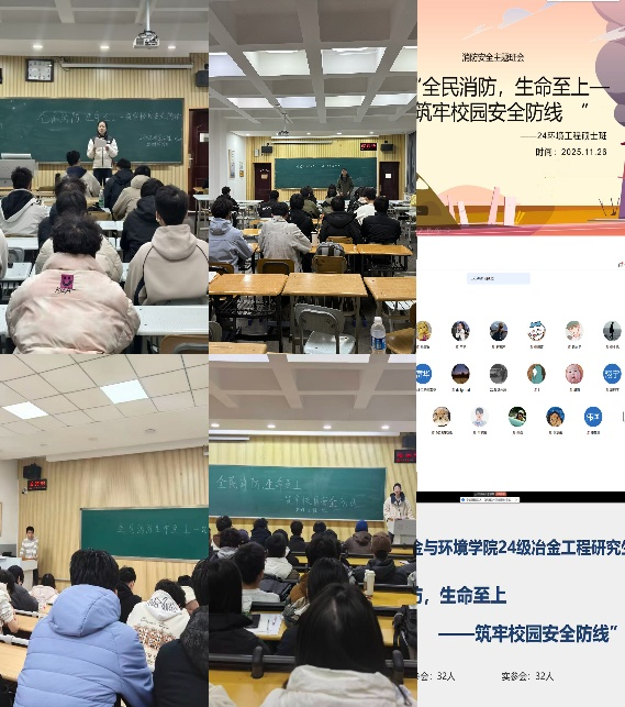 为深入贯彻落实“全民消防、生命至上”理念,近期冶金与环境学院面向全体学生结合线上线下的方式组织开展了“筑牢校园安全防线”主题班会活动。本次活动通过系统化的知识讲解与典型案例分析,全面覆盖宿舍安全、规范吸烟、用电规范与实验室操作等重点领域,旨在全面提升学生的消防安全意识和自防自救能力,构建多层次、全覆盖的校园安全教育体系。